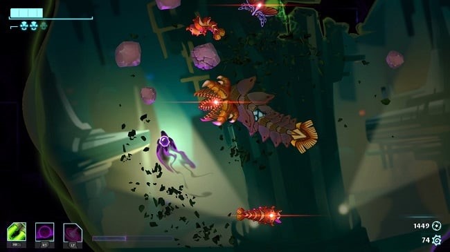 Os fãs de jogos de tiro espaciais e roguelites têm motivos para comemorar. No próximo dia 3 de junho, a desenvolvedora Crunchy Leaf Games, da Alemanha, lançará a aguardada versão 1.0 de Galactic Glitch, um twin-stick shooter que aposta em combate baseado em física e mecânicas inovadoras. O jogo estará disponível na Steam por R$ 46,99, com 25% de desconto nas duas primeiras semanas após o lançamento.