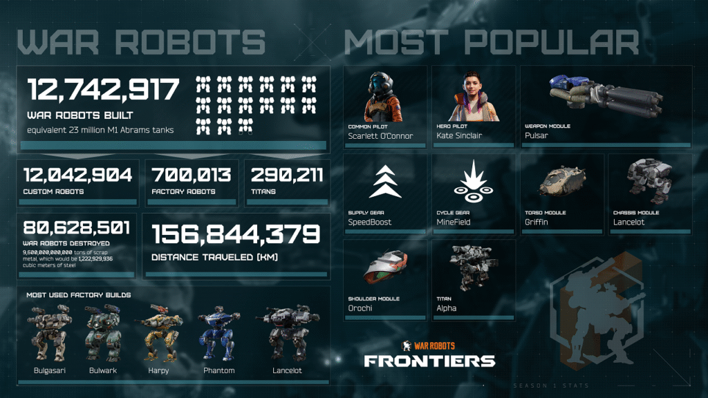 A comunidade de War Robots: Frontiers tem muito o que comemorar. Com o encerramento da primeira temporada, a MY.GAMES revelou dados empolgantes e anunciou os destaques da Temporada 2: “Power Surge”, programada para começar no dia 17 de junho.